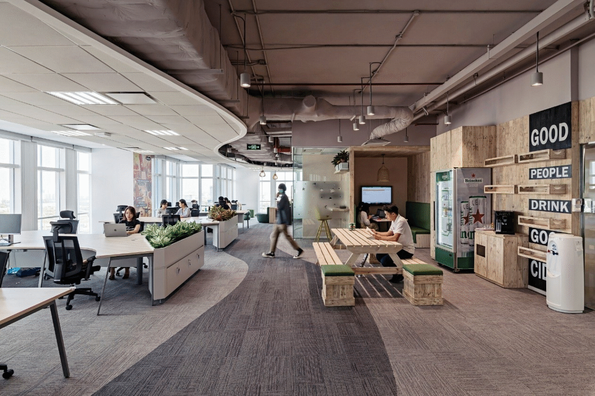 Không gian co-working thường được thiết kế hiện đại, sáng tạo, mang đến cảm giác thoải mái và truyền cảm hứng cho nhân viên. Các khu vực mở, ánh sáng tự nhiên, phòng họp tiện nghi và khu vực giải lao giúp nhân viên tăng năng suất và tinh thần làm việc.